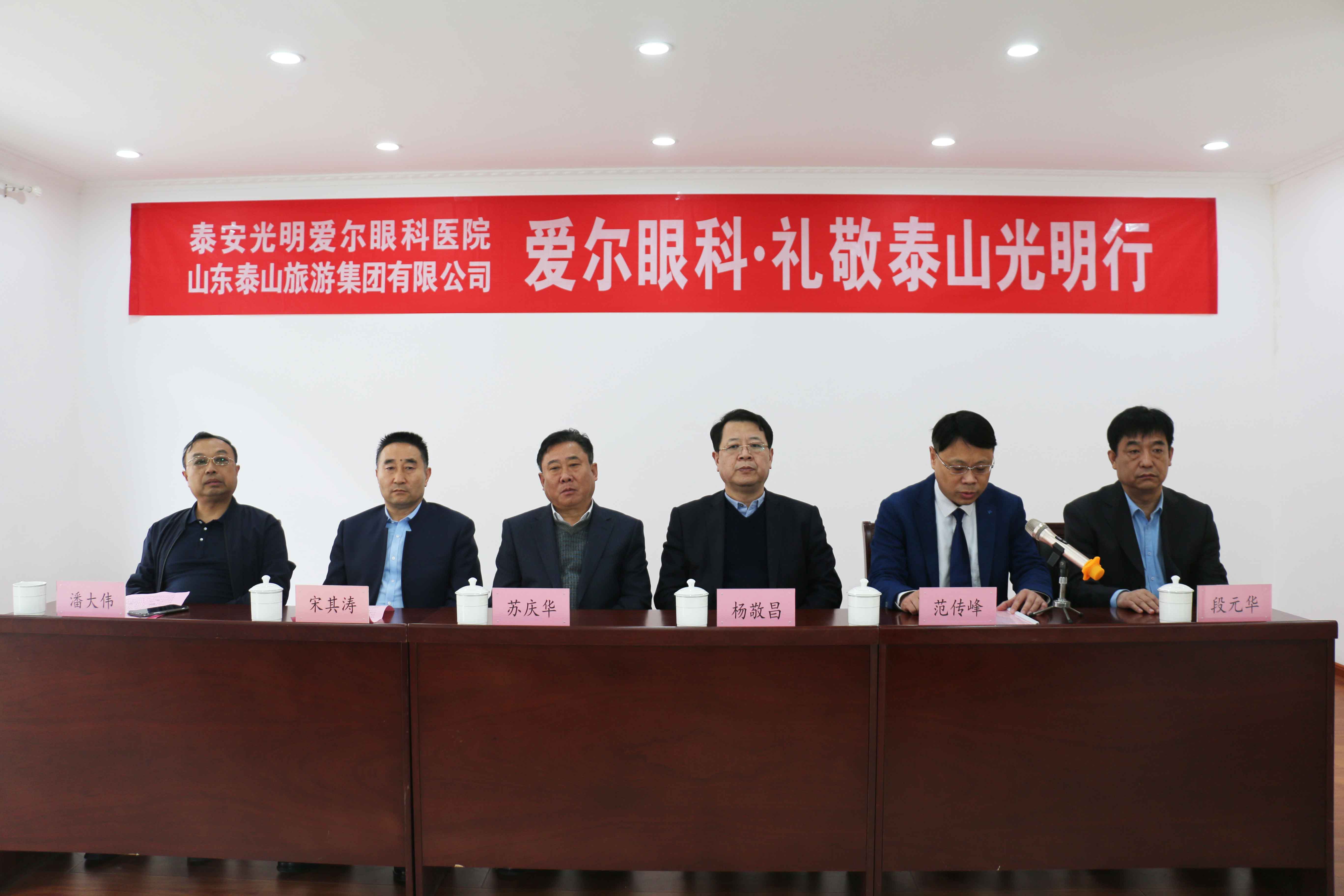 ? ? ? ? 泰山是中華文化的承載者,泰山旅游集團(tuán)是泰山文化的守護(hù)者,弘揚泰山文化,是每一位泰城人民應(yīng)盡的義務(wù),也是泰城企業(yè)應(yīng)承擔(dān)的社會責(zé)任。啟動儀式現(xiàn)場,泰安光明愛爾眼科醫(yī)院范傳峰院長表示,泰山旅游集團(tuán)是泰山形象的代言人,時刻維護(hù)我們泰山形象,愛爾眼科禮敬泰山,表達(dá)了我們對泰山文化的尊崇,光明行動惠及集團(tuán)廣大員工,祈愿巍巍泰山更加壯麗,神州大地國泰民安。同時,泰安光明愛爾眼科醫(yī)院作為IPO上市公司愛爾眼科集團(tuán)旗下500余家眼??漆t(yī)院之一,希望用精湛的眼科診療技術(shù),為泰城市民提供優(yōu)質(zhì)的眼健康服務(wù)。