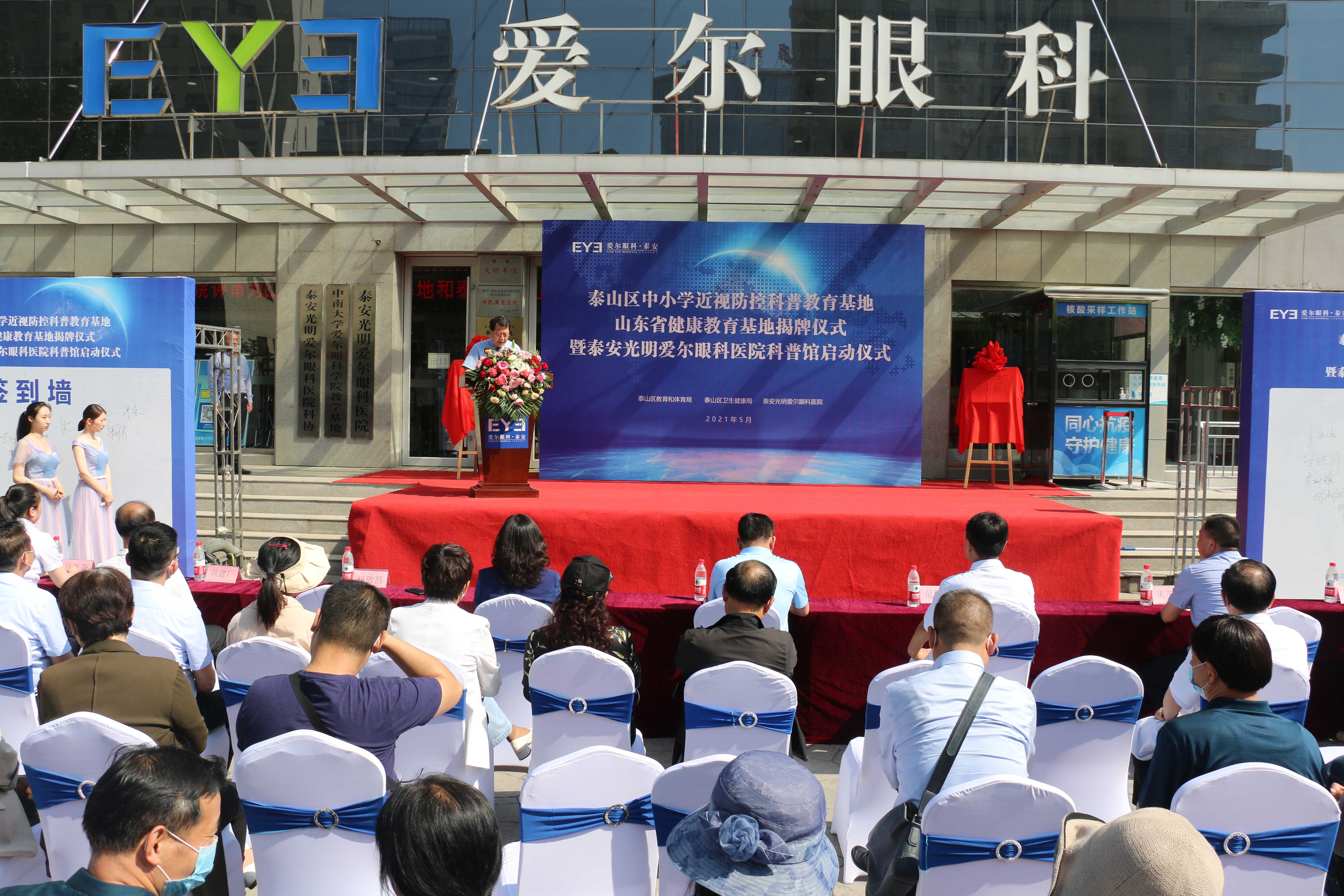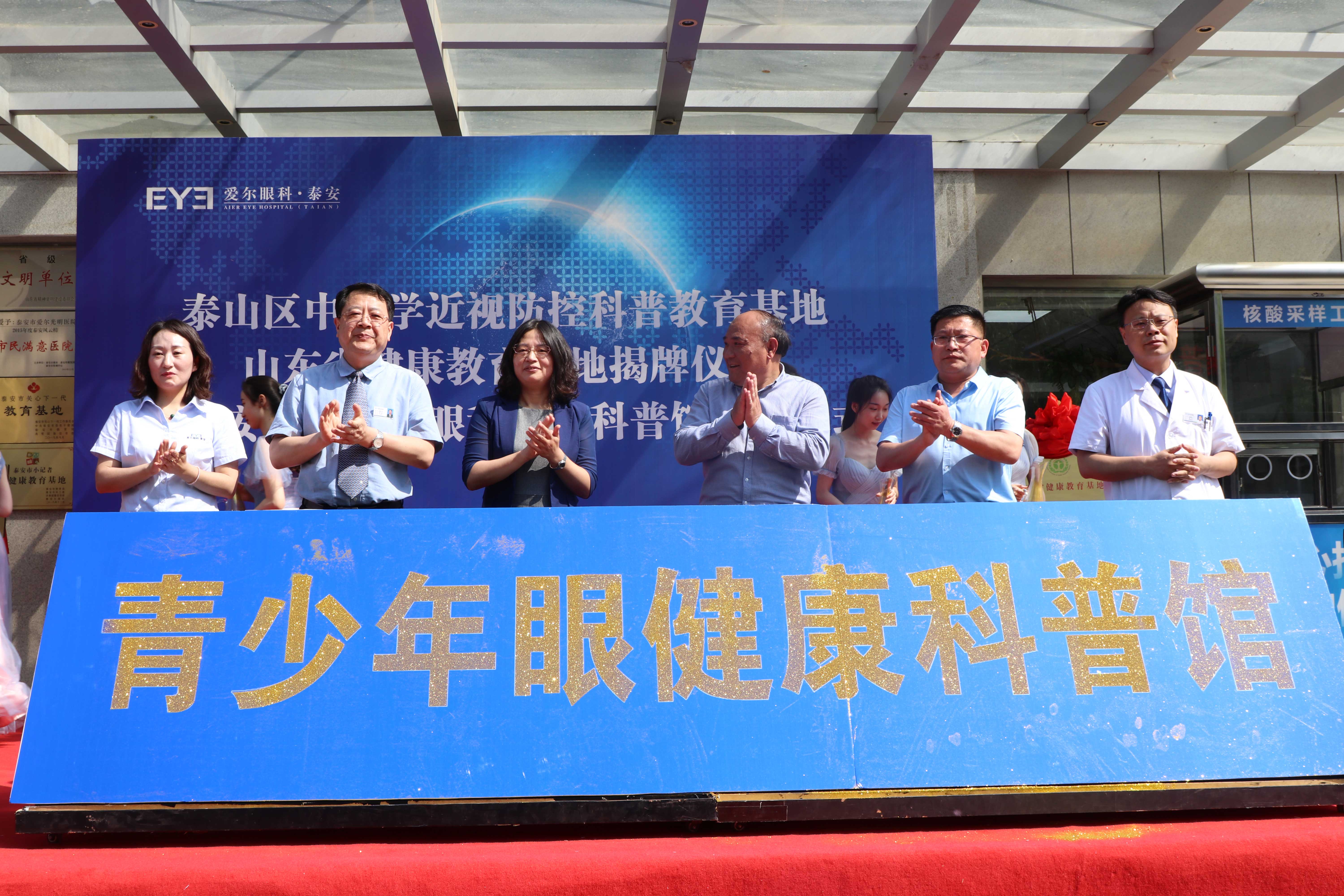 ? ? ? ? 5月27日,泰安市眼健康科普體驗(yàn)館在泰安光明愛(ài)爾眼科醫(yī)院正式啟動(dòng),并被山東省疾病預(yù)防控制中心和泰山區(qū)教體局分別授予“山東省健康教育基地”和“泰山區(qū)中小學(xué)近視防控科普教育基地”。泰山區(qū)衛(wèi)生健康局黨組成員、副局長(zhǎng)寧方莉、泰山區(qū)教育和體育局分管領(lǐng)導(dǎo)高京杰、泰山區(qū)疾病預(yù)防控制中心副主任梁洪濤、泰山區(qū)各中小學(xué)學(xué)校領(lǐng)導(dǎo)、泰山區(qū)各街道衛(wèi)生院院長(zhǎng)出席本次活動(dòng),泰山區(qū)教育和體育局分管領(lǐng)導(dǎo)高京杰主持啟動(dòng)儀式。