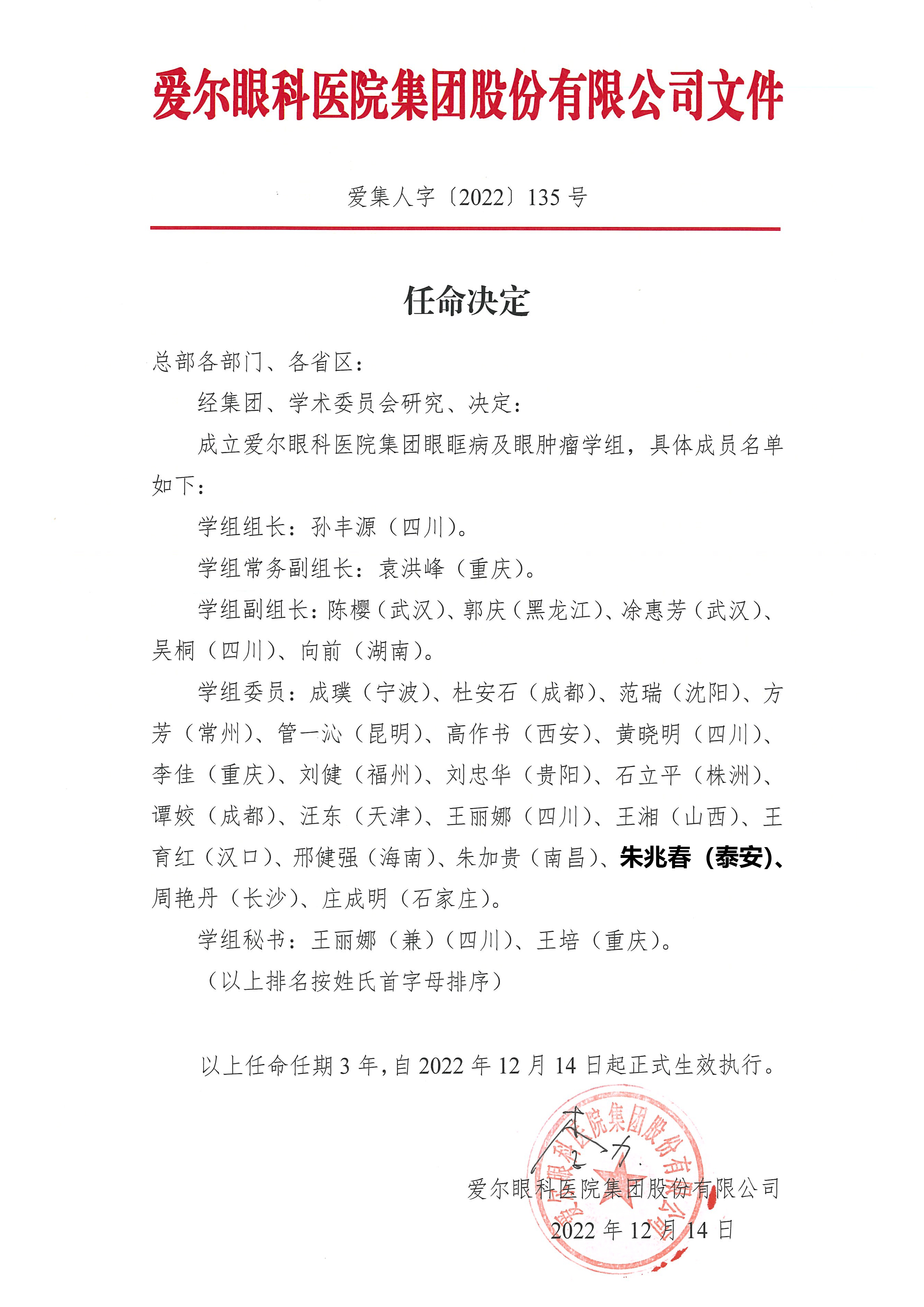 經(jīng)集團(tuán)、學(xué)術(shù)委員會(huì)研究決定成立愛(ài)爾眼科醫(yī)院集團(tuán)眼眶病及眼腫瘤學(xué)組,由孫豐源教授任組長(zhǎng),我院眼表淚道科主任朱兆春當(dāng)選為學(xué)組委員。??