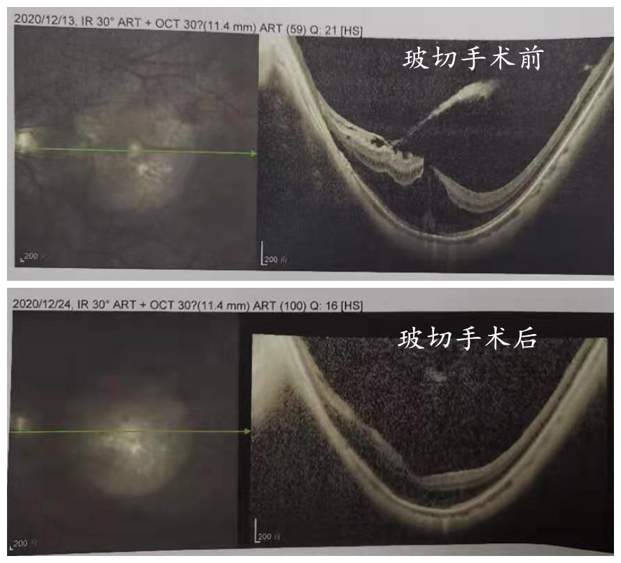 ? ? ? ? “戴了20多年眼鏡了,近視2000多度,摘掉眼鏡什么也看不見,前段時(shí)間我就發(fā)現(xiàn)我的左眼視力開始下降,而且看對(duì)面的大樓都是彎的,我就趕緊來醫(yī)院做檢查,沒想到經(jīng)過檢查,大夫跟我說我的眼底‘裂開’了?!?/p>